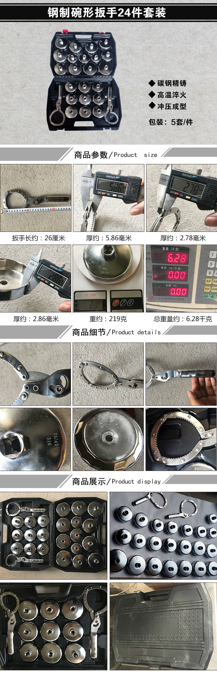 • 【特价处理】钢制碗形机滤扳手24件套装/钢制帽式滤清器扳手