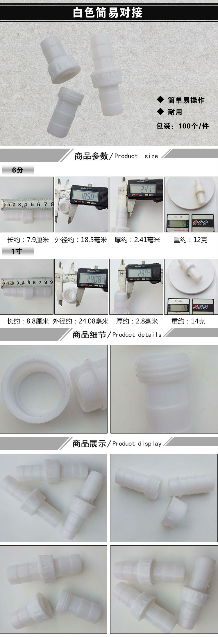 白色简易对接软管接头快接(100个/件)