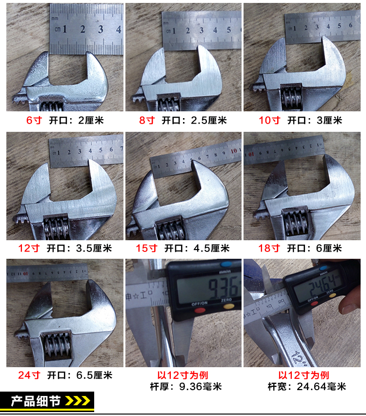 捷邦白色开口大镀铬活扳手 活动扳手