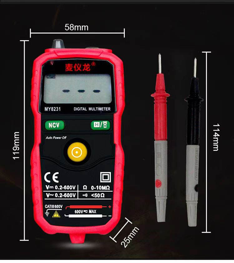 • 商品名称:智能数字万用表麦仪龙PM8231袖珍全自动量程高精度电工家用万能表