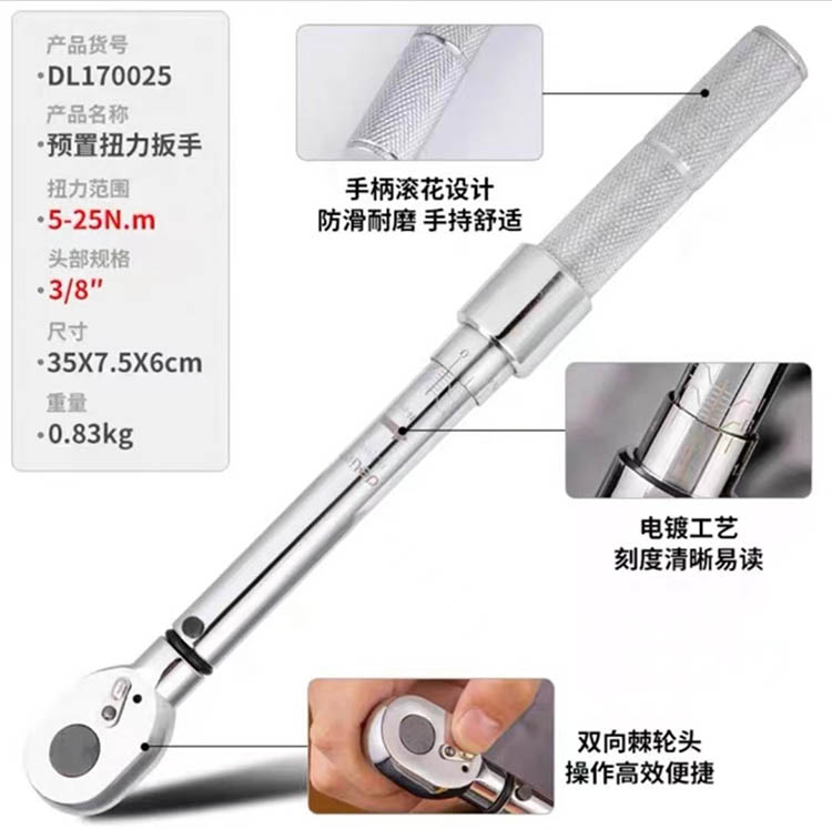 • 得力5-25N.m预置扭力扳手(银)(1/-/10)