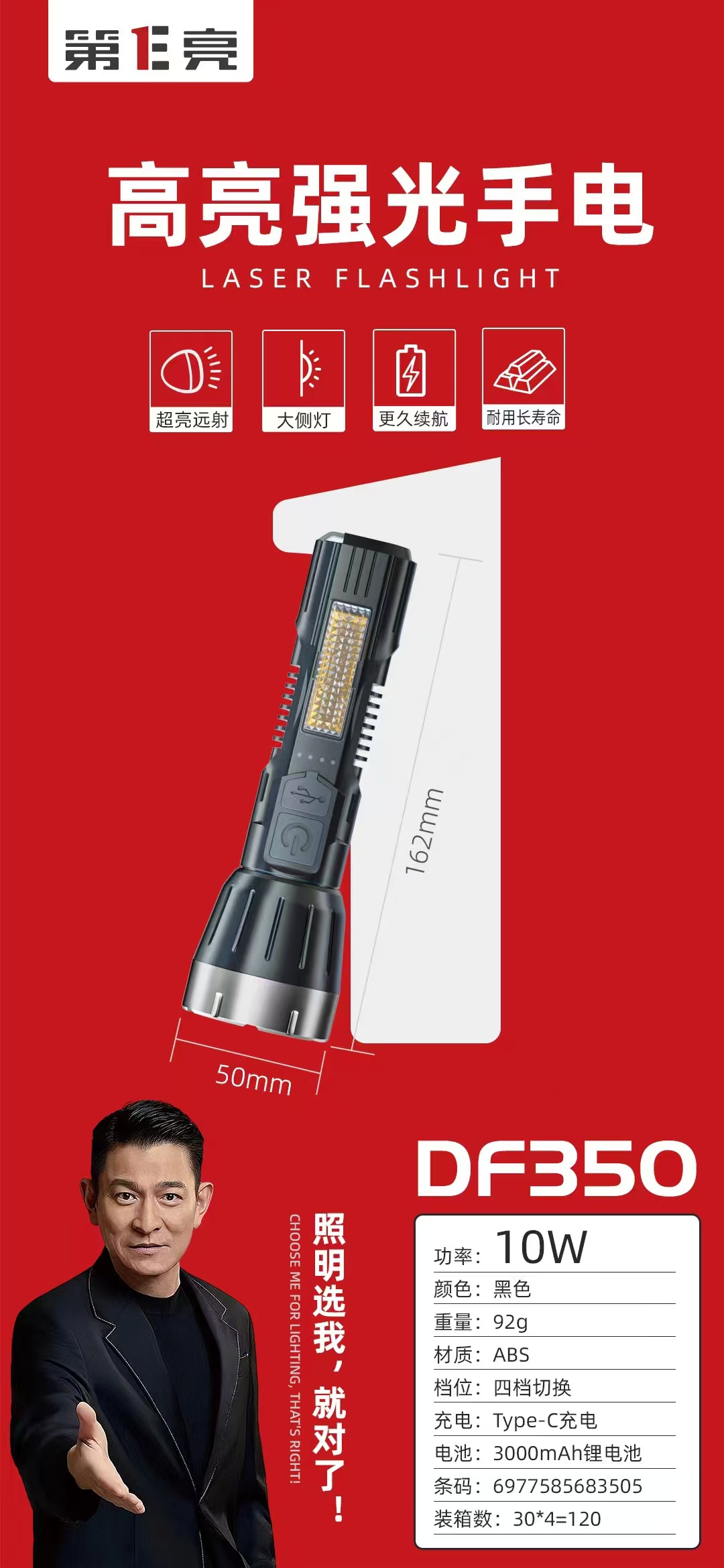第E亮强光手电 DF100/COB版伸缩强光手电(48/件)